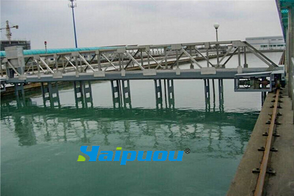 6、吸泥管和排泥管管道安裝,從吸泥泵的入口處開始自上往下安裝管道及吸泥嘴,吸泥嘴至池底距離為10~20mm。數(shù)臺吸泥泵匯總至一條出泥管道排入平流池外側(cè)污泥溝中。